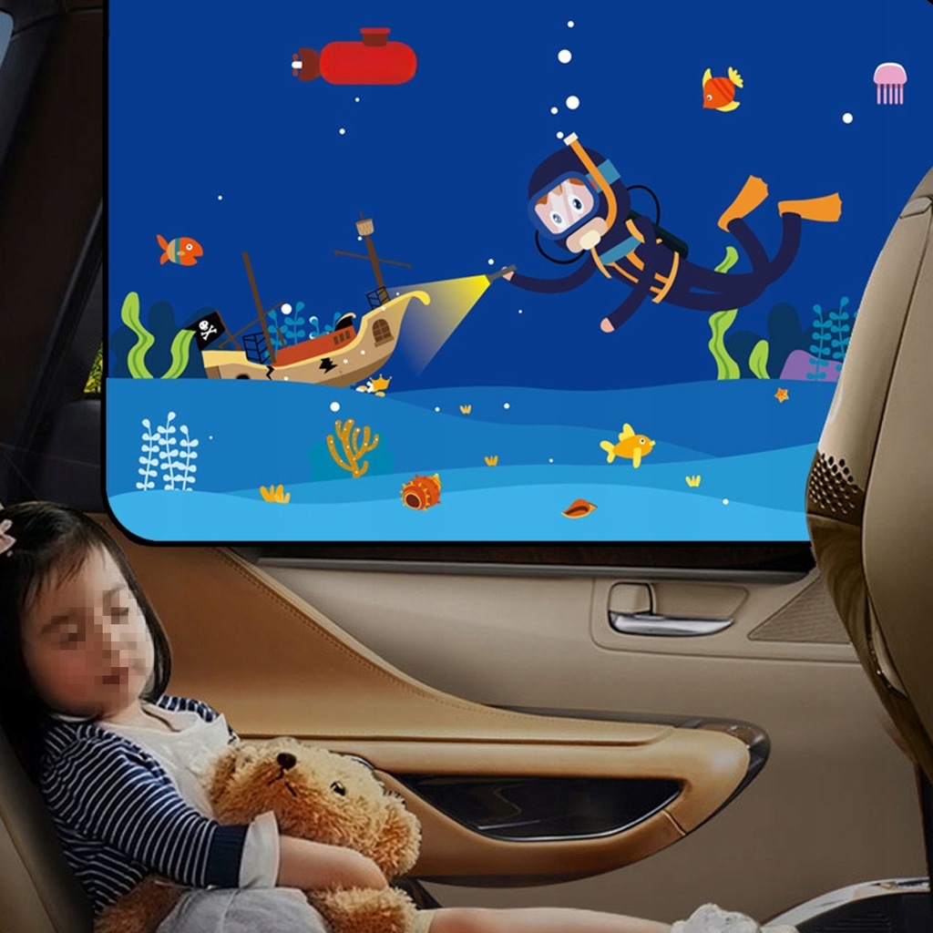 ✅Made of polyester and processed by many procedures, this sun shade is practical and wearresistant. The car sun shade can reflect or block most percent of harmful UV rays. It is a superb protect your child from the harm and heat of strong sunlight. Keep your child cool and offer a great privacy. design add extra color and fun to your car. Effective shading and easy cleaning.