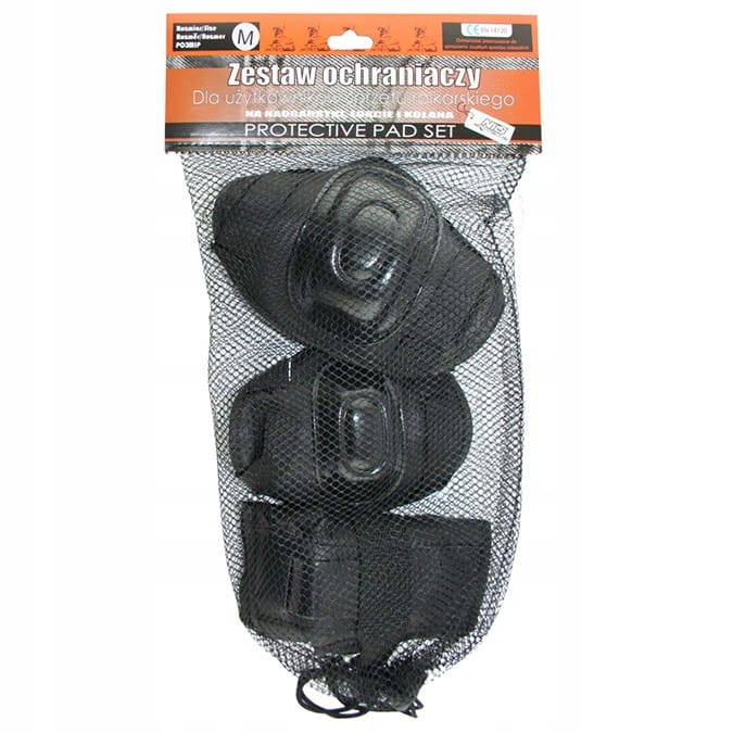 W opakowaniu 6 różnych ochraniaczy na kolana, nadgarski i łokcie