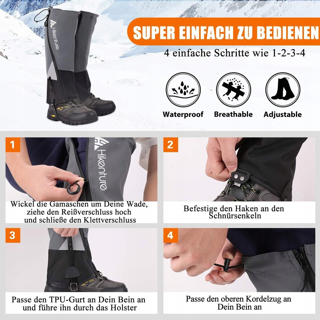 - lekkie i elastyczne ochraniacze na wędrówki są wodoodporne i idealnie chronią przed wilgocią, śniegiem i kamieniami w bucie