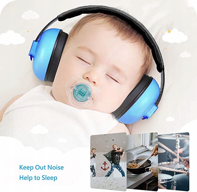 Zmienne ochraniacze na uszy opaski można elastycznie dostosować, aby pasowały do różnych rozmiarów. Niebieski kolor unisex idealny zarówno dla chłopców, jak i dziewcząt w wieku od 0 miesięcy do 18 miesięcy