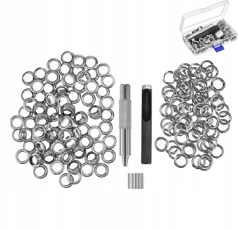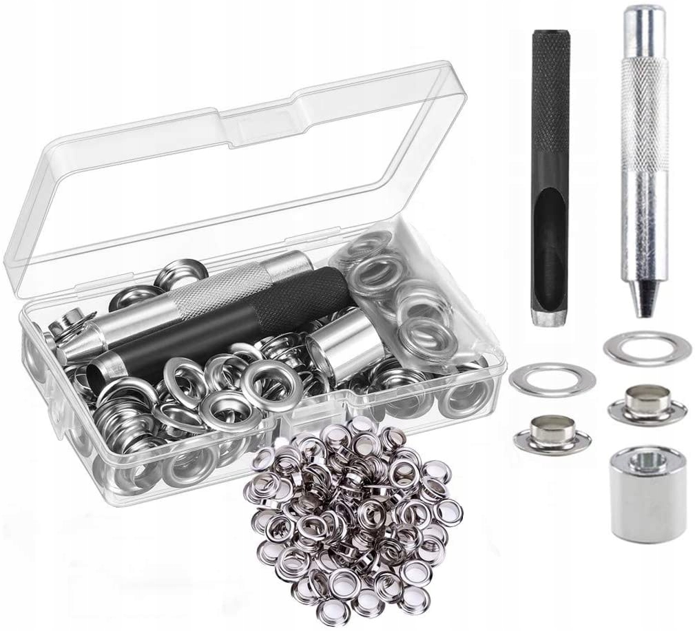 Wiele kombinacji: zestaw przelotek zawiera wycinak do otworów, pasujący trzpień i 100 zestawów otworów przelotek (każdy zestaw zawiera 1 oczko i 1 podkładkę) oraz schowek