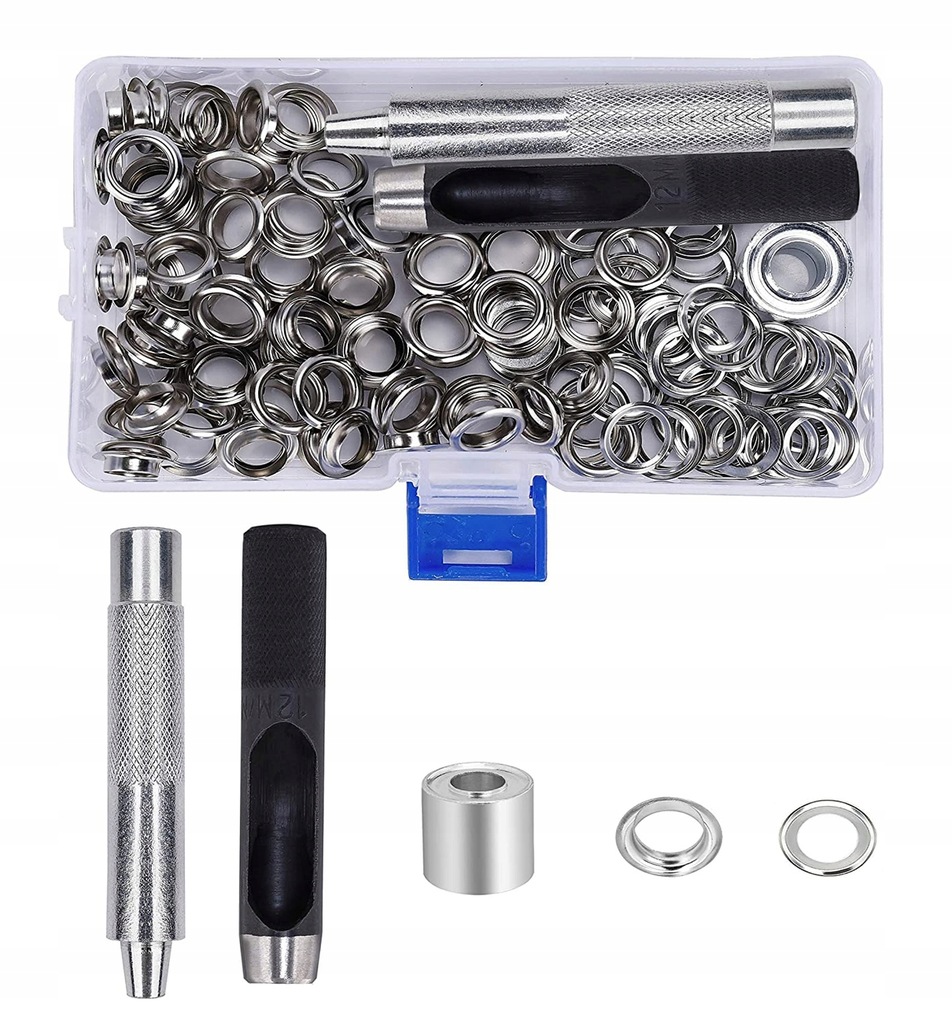Narzędzie do majsterkowania: zestaw przelotek to ekonomiczne rozwiązanie do naprawy brezentów, plandek, namiotów, markiz, osłon basenów itp .; Oczka przelotek można łatwiej zamocować za pomocą frezu do otworów i trzpienia.