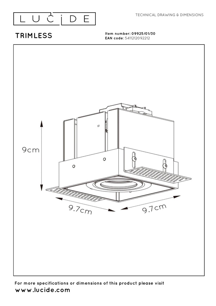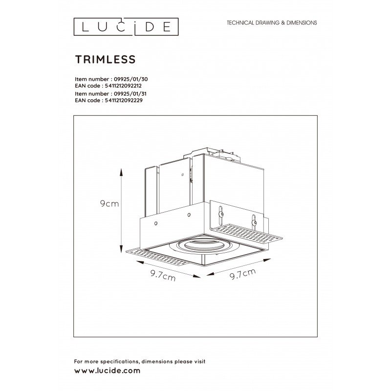 Model Lucide TRIMLESS ma źródło światła w ilości 1, dzięki czemu bez problemu nada się do rozjaśnienia małych powierzchni.