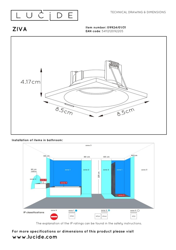 ✔️ Idealny do łazienek. Można połączyć Zivę ze ściemnialnym lub ciepłym źródłem światła z gwintem GU10.