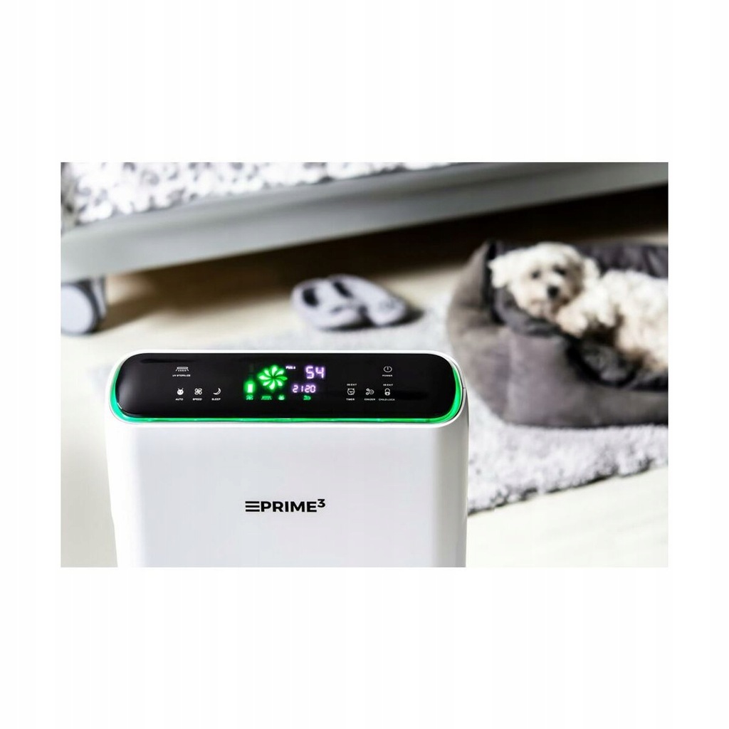 Oczyszczacz powietrza Prime z pilotem. 7-stopniowy proces oczyszczania powietrza. Filtry: wstępny, zimnej katalizy, węgla aktywowanego, antybakteryjny, HEPA. Lampa UV. Jonizator. Oczyszczanie powietrza z pyłów PM2,5, bakterii, wirusów, formaldehydu. 3 prędkości. Głośność: 29-50 dB. Programator czasowy. Pilot zdalnego sterowania. Wskaźnik jakości powietrza. Moc: 80 W. Obszar działania: 50 m2. Zasilanie: AC 230 V~. Wymiary: 37 x 19,5 x 65 cm. Opakowanie: karton.