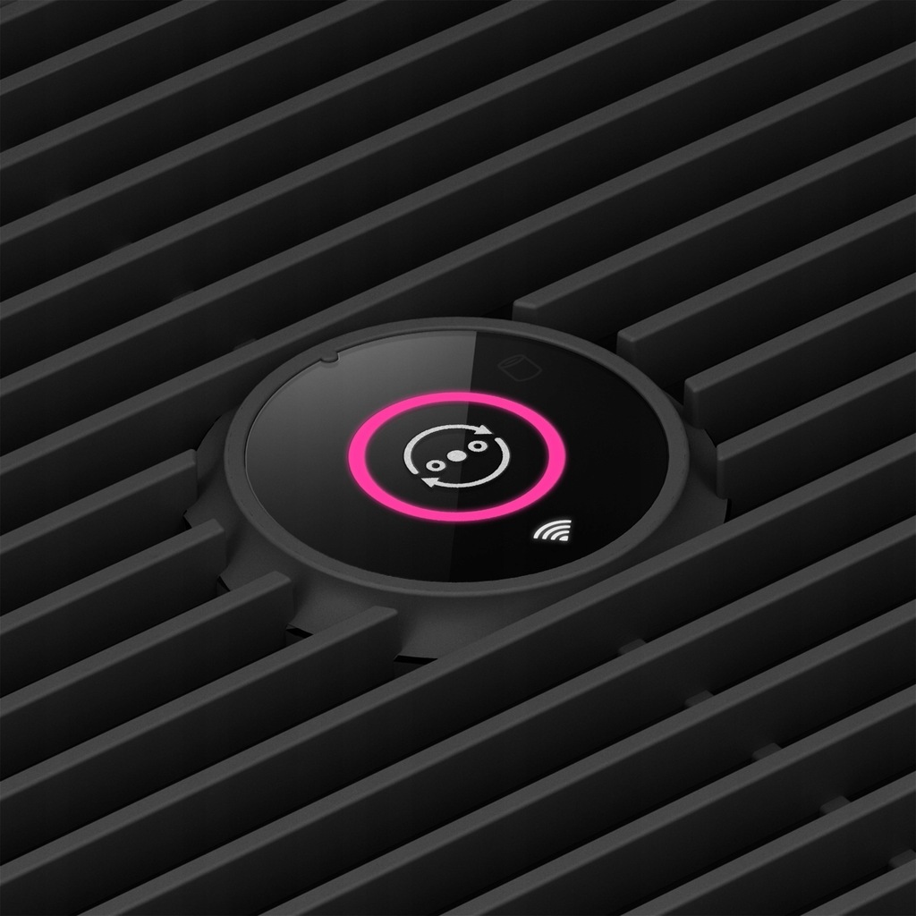 Jakość powietrza w pomieszczeniach zostaje zwizualizowana przez wskaźnik, w zakresie od niebieskiego (dobra), przez fioletowy (średnia), różowy (zła), aż do czerwonego (bardzo zła).