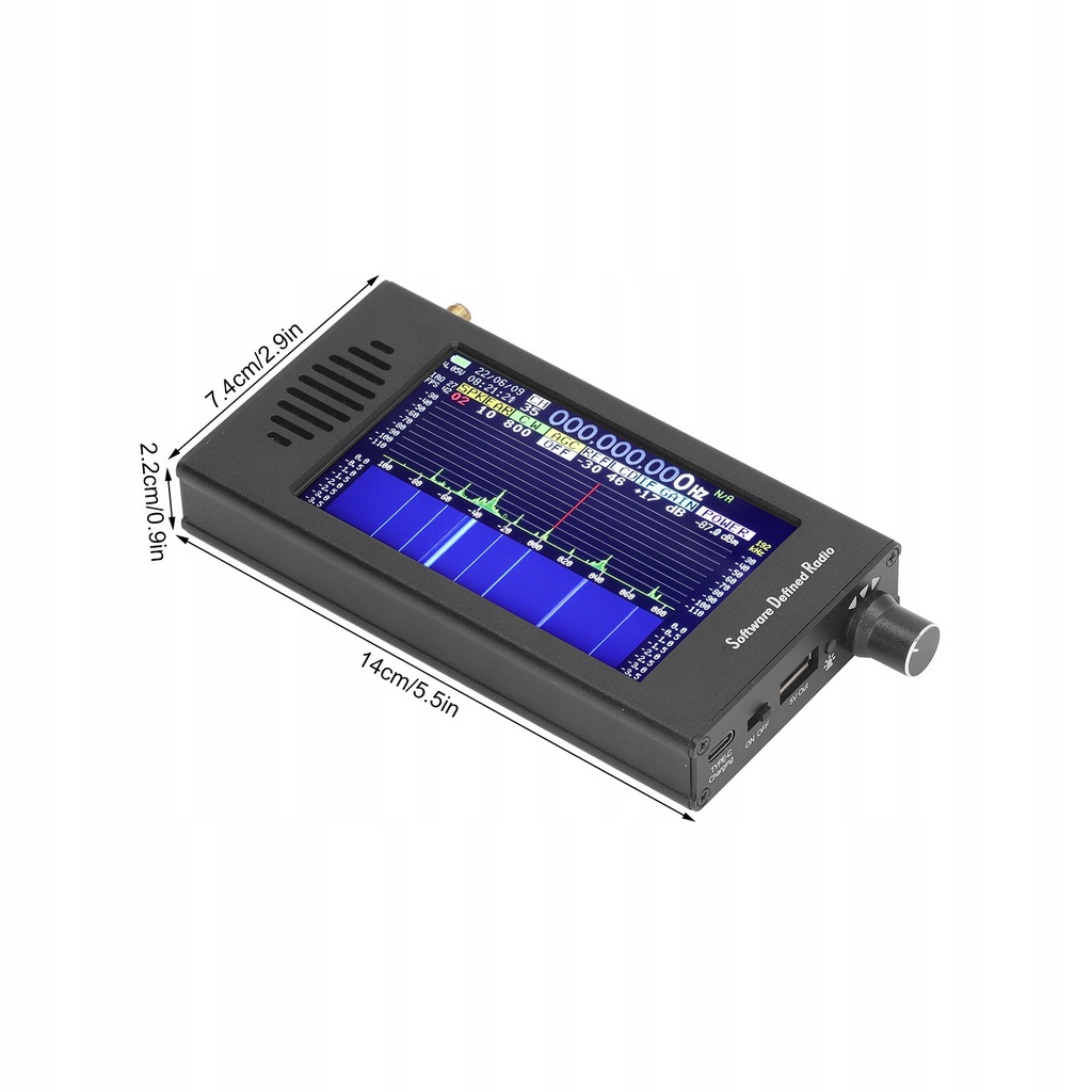 WYŚWIETLACZ LCD: Odbiornik SDR posiada obudowę CNC wykonaną w całości ze stopu aluminium i jest wyposażony w 4,3-calowy wyświetlacz IPS LCD o wysokiej jasności i rozdzielczości 800x480.
