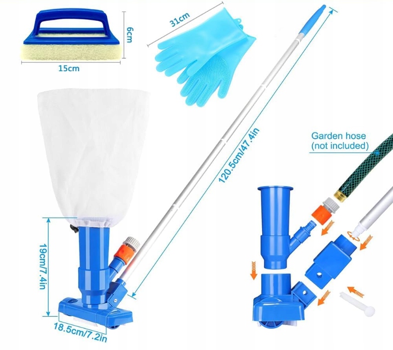 Ten zestaw czyszczący to niezastąpiony sprzęt dla każdego posiadacza basenu, który chce cieszyć się krystalicznie czystą wodą i komfortem kąpieli.