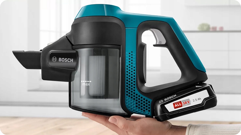 Jeśli posiadasz dodakotwy akumulator - jako oddzielne wyposażenie lub z innych elektronarzędzi Bosch z rodziny Power for All 18V - to możesz znacznie wydłużyć czas działania odkurzacza Bosch Unlimited. Dzięki temu innowacyjnemu rozwiązaniu odkurzacze Unlimited są gotowe do pracy zawsze, kiedy ich potrzebujesz. Wystarczy wymienić akumulator.