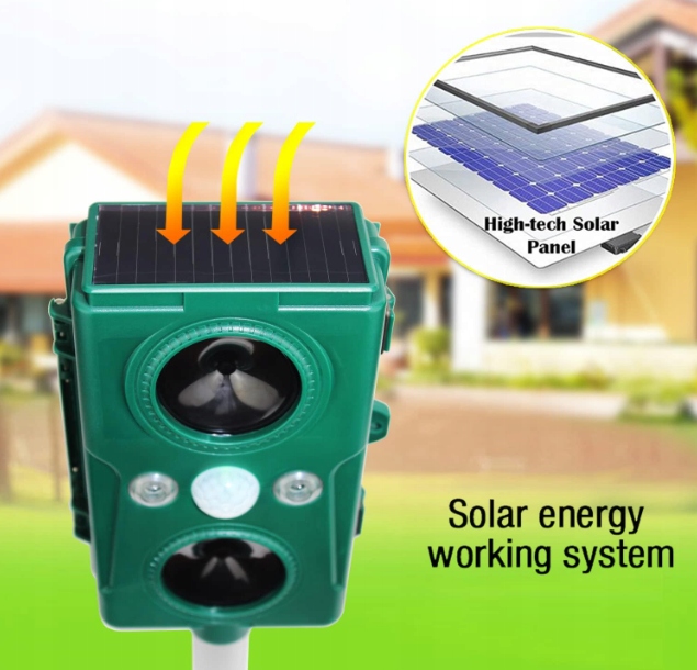Przyjazny dla środowiska, emitowane ultradźwięki i światło flesz nie zabijają i nie szkodzą zwierzęciu. Dźwięki i silne światło podrażniają zwierzęta co powoduje że unikają obszaru chronionego przez odstraszacz.