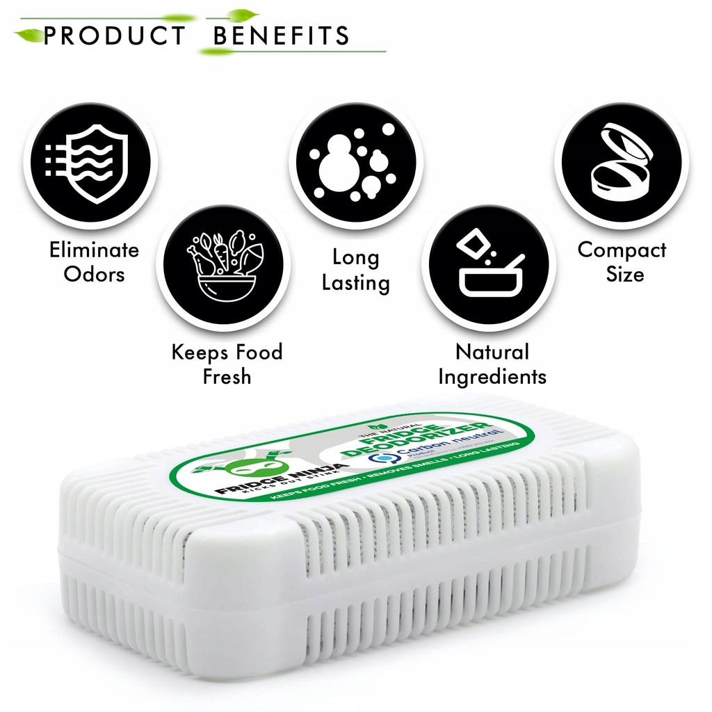 Naturalne odświeżacze do lodówki Ninja z węglem drzewnym + termometr (4 szt.)