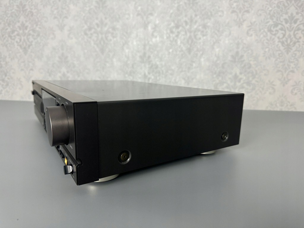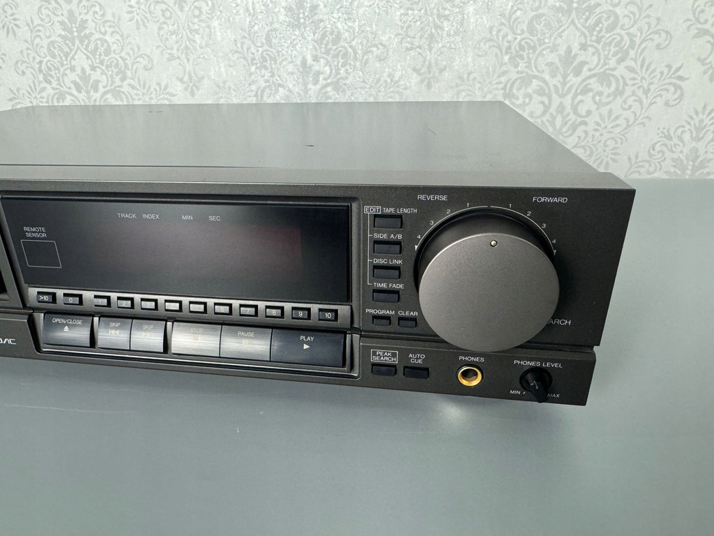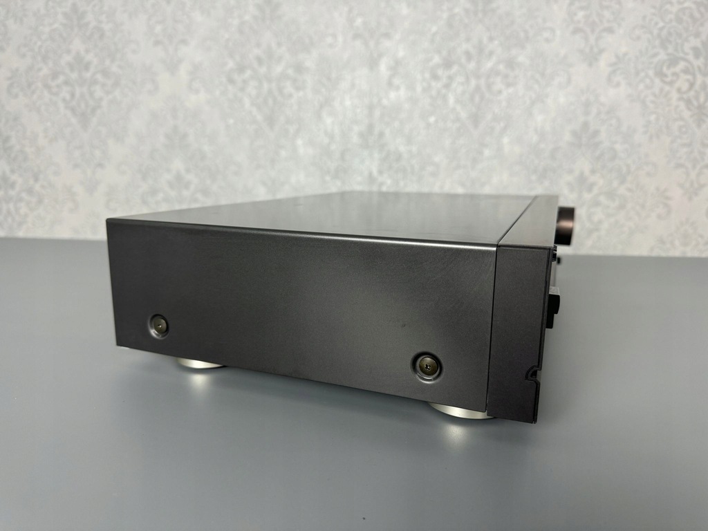 Elegancki, zaawansowany technologicznie i stylowy odtwarzacz płyt kompaktowych Technics. Posiada charakterystyczne dla wyższych modeli tego producenta - pokrętło do przemieszczania się po danym utworze, co robi się znacznie efektywniej niż w przypadku klasycznych, służących do tego przycisków. Podłączany do urządzenia wzmacniającego klasycznym kablem RCA-cinch. Brak pilota w zestawie, ale wszystkie kluczowe funkcje obsłużyć można przyciskami na froncie urządzenia.
