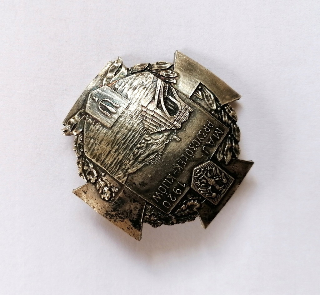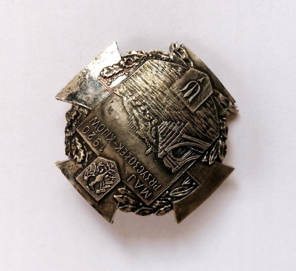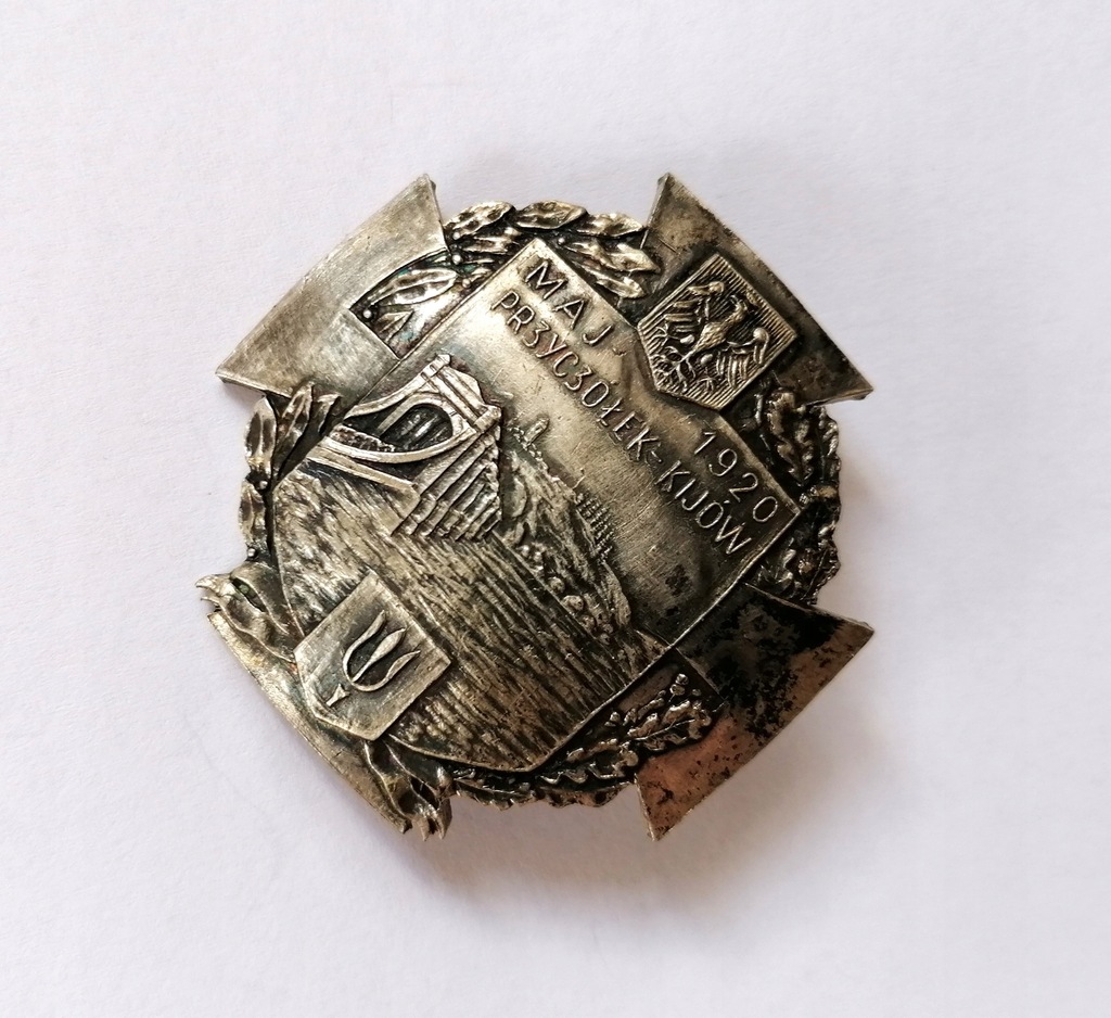 Odznaka pamiątkowa Przyczółek Kijów 1920. Odznaka jednoczęściowa, srebrzona. Wymiary: 43 x 43 mm. Licytujesz pozycję z załączonych zdjęć (real foto). Polecam.