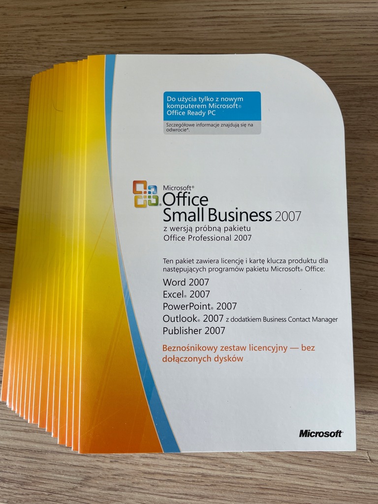 Przelotem sprzedaży jest używany pakiet biurowy Office 2007 Small Business. Jest to karta z kluczem do aktywacji pakietu. Licencja na jedno stanowisko, na jeden komputer dla jednego użytkownika. Licencja wieczysta-dożywotnia.