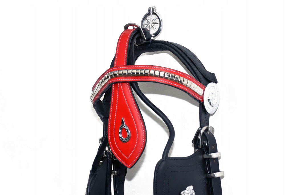 Ogłowie Zaprzęgowe Anatomiczne profilowane roz.X- Full na zimnokrwistego konia.Ogłowie wyprodukowane w zakładzie Rymarskim .Wykonane z najwyższej jakości skóry bydlęcej bardzo miękkiej i miłej w dotyku , część potyliczna i naczółek poszyty miękko skórą ,aby zapobiec obtarciom .Ogłowie zapinane i regulowane jest na stabilne sprzączki , wykonane z bardzo dobrej nierdzewnej stali szlachetnej . W części potylicznej zamontowana tulejka ,która pozwala na wkręcenie pióropusza. Zapraszam do zakupu.