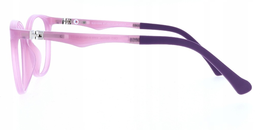Zauszniki pod kolor frontu zakończone fioletowymi golfami z możliwością regulacji; wymienny zawias typu flex odginający się pod kątem 180 stopni, co istotnie zwiększa jego odporność na złamanie