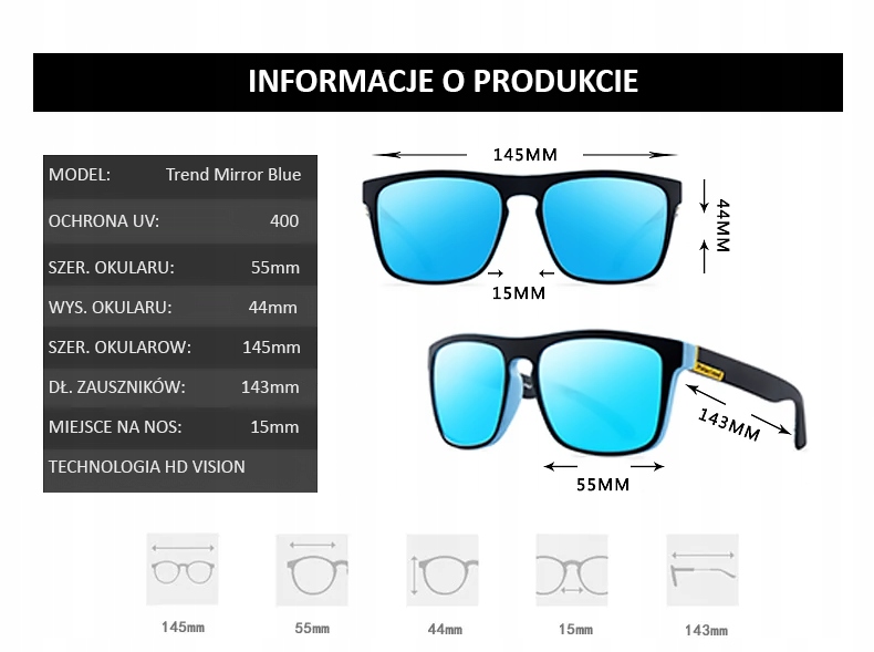 - Kolor szkieł: niebieski - efekt lustra