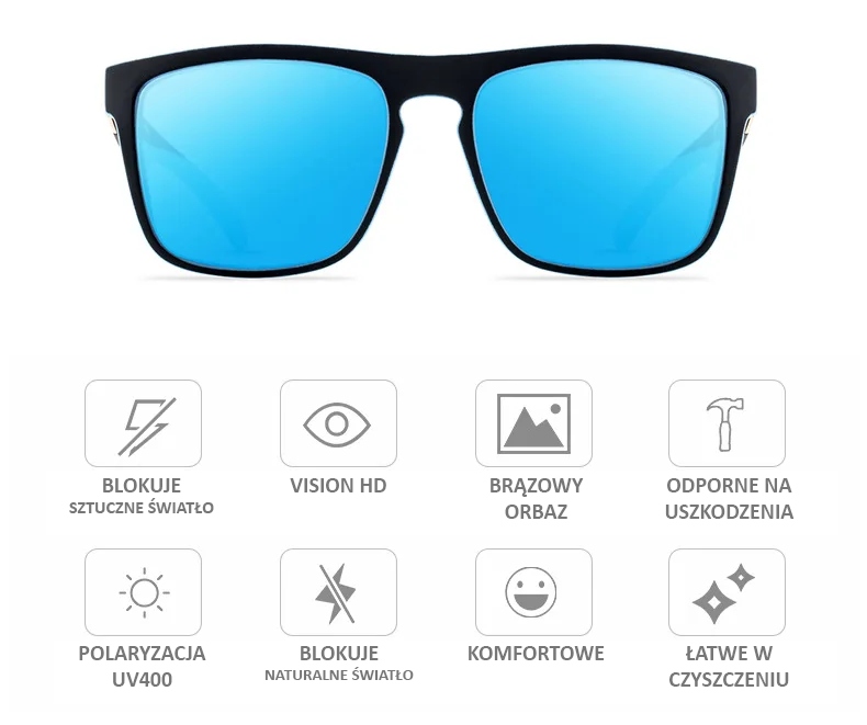Wygodne okulary w najlepszym na rynku kształcie. Polaryzacja na poziomie UV400 sprawia, że sprawdzą się idealnie do auta blokujący rozbłyski sztucznego światła jak i na ryby - niwelujący flary słoneczne oraz odbicia promieni UV od tafli wody. Wszelkie rozbłyski blokowane są nie tylko na poziomie widzialnym ale również w zakresie ultrafioletu.