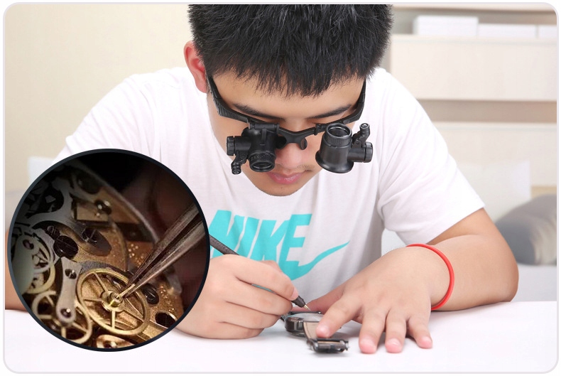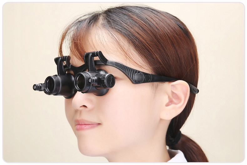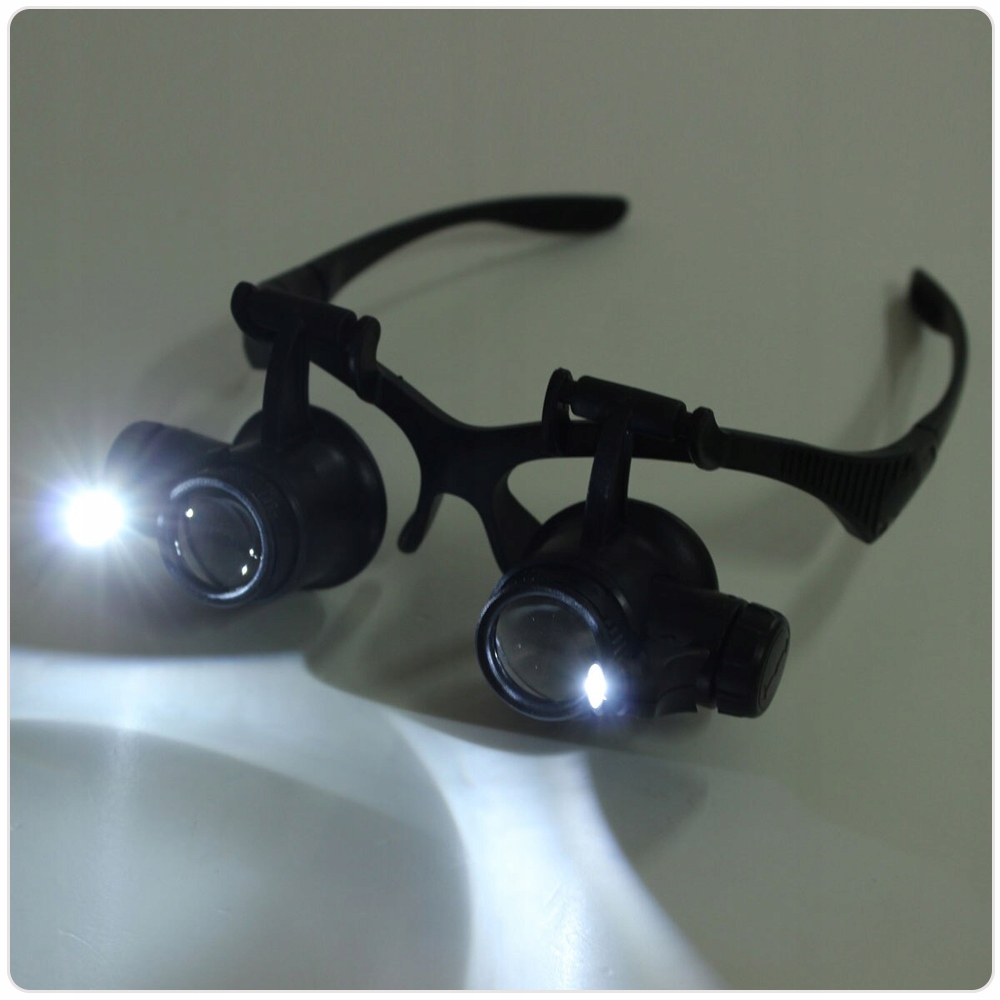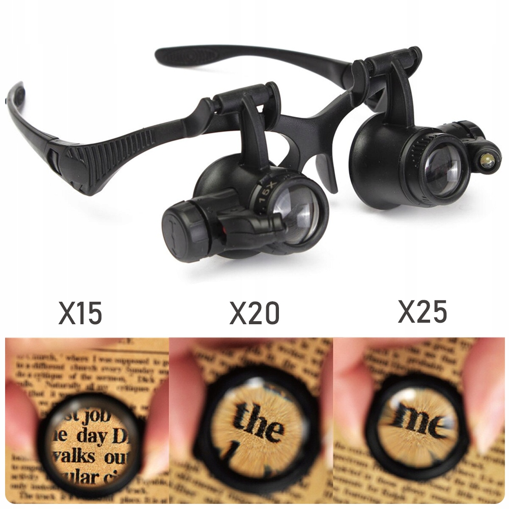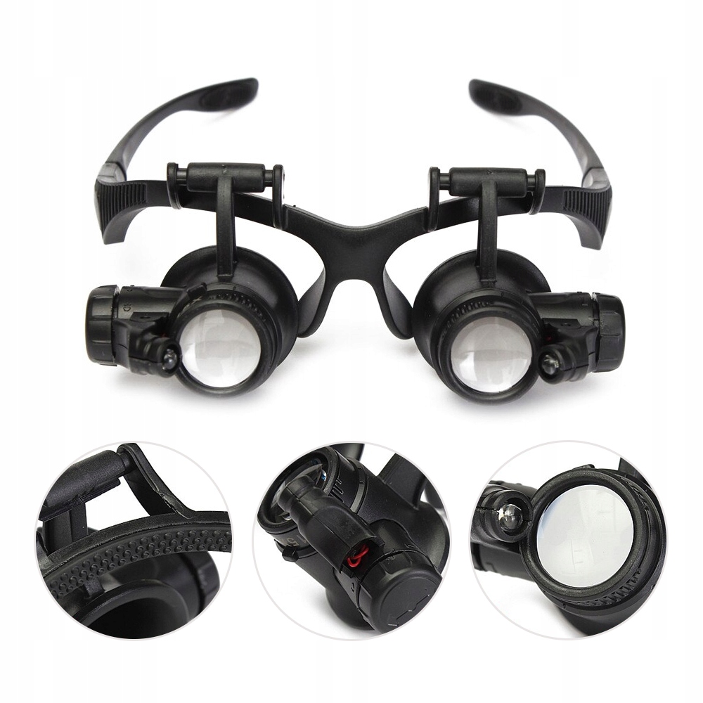 ✅ Okulary serwisowe lupa precyzyjna 10x 15x 20x 25x ⭐ Precyzyjne okulary, lupa serwisowa o powiększeniu x10, x15, x20, x25 ⭐ Szerokie zastosowane w obróbce mechanicznej, elektronicznej, oceny naprawy biżuterii, naprawy zegarków, miniaturowych prac, grawerowania, oglądania biżuterii, znaczków, monet, naprawy elektroniki itp. ⭐ Okulary serwisowe zostały wykonane precyzyjnie, lupa powiększająca na oboje oczy z możliwością regulacji, oraz zmiany soczewek. ⭐ Okulary zostały dodatkowo wyposażone w regulowane światło led, które ułatwi pracę. Zestaw został wyposażony w 4 pary soczewek o rożnych powiększeniach. ⭐ Dzięki wymiennym mocowania (tradycyjne za uszy) lub za pomocą ściągacza (za głowę) zapewnia komfortową pracę. ⭐ Soczewki powiększające można regulować, w dowolnym nachyleniu.