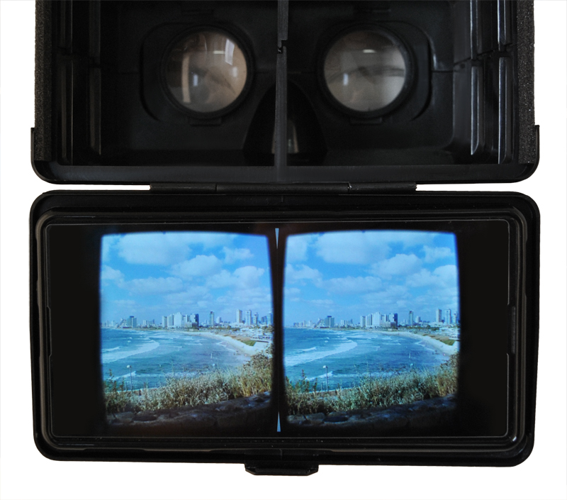 Okulary VR do smartfona. Pozwalają korzystać z gier, video i aplikacji 3D - obraz wyświetla się osobno dla każdego oka, składając go w jeden spójny trójwymiarowy widok, zapewniając realistyczne wrażenia.