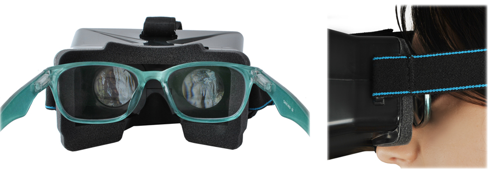 Po ściągnięciu odpowiedniej gry/aplikacji/video, należy ją uruchomić i włożyć telefon do środka okularów. Okulary dopasowują się do każdej głowy dzięki regulowanym paskom, można nosić je także wraz z okularami korekcyjnymi (gogle nie są jednak przeznaczone do używania z okularami dla osób o krótkowzroczności powyżej 5.0 dioptrii).