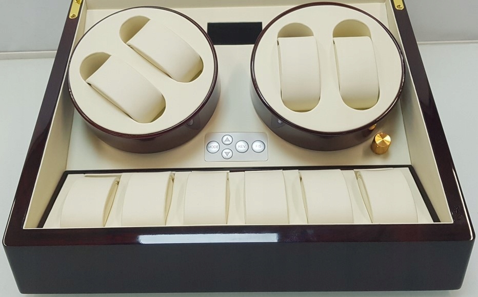 Miejsce na 10 zegarków - 2 podesty obrotowe, każdy z 2 miejscami i 6 stałych miejsc