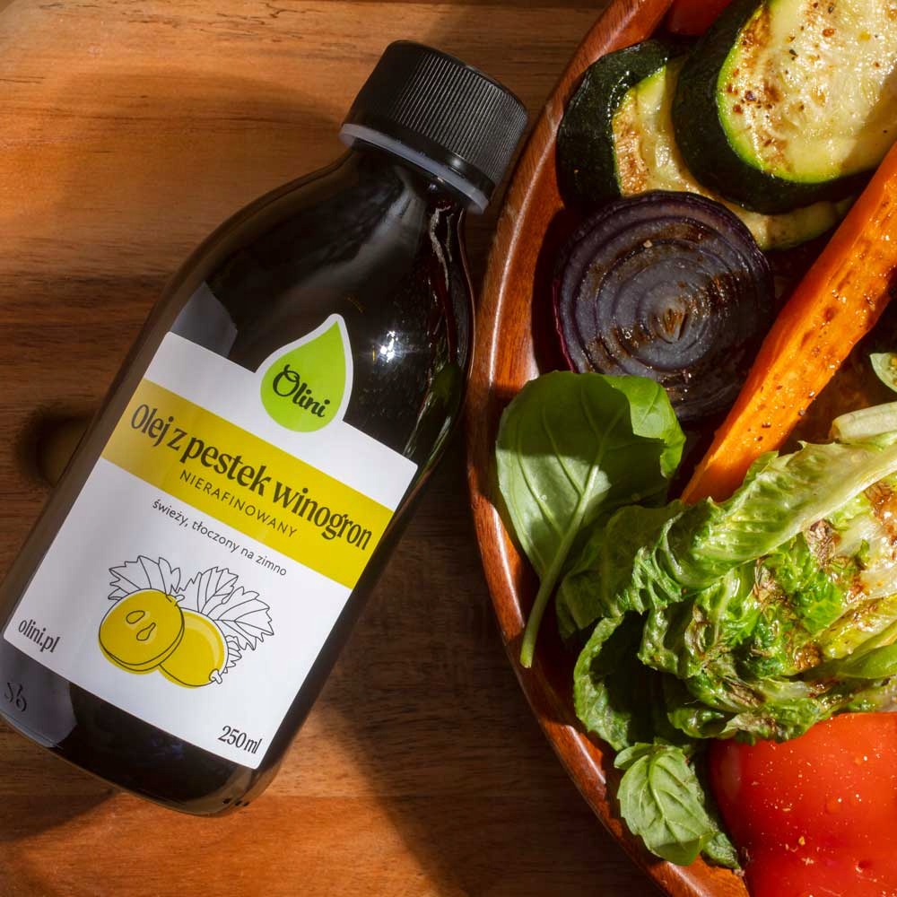 Olej z pestek winogron Olini – świeży, nierafinowany, o delikatnym smaku