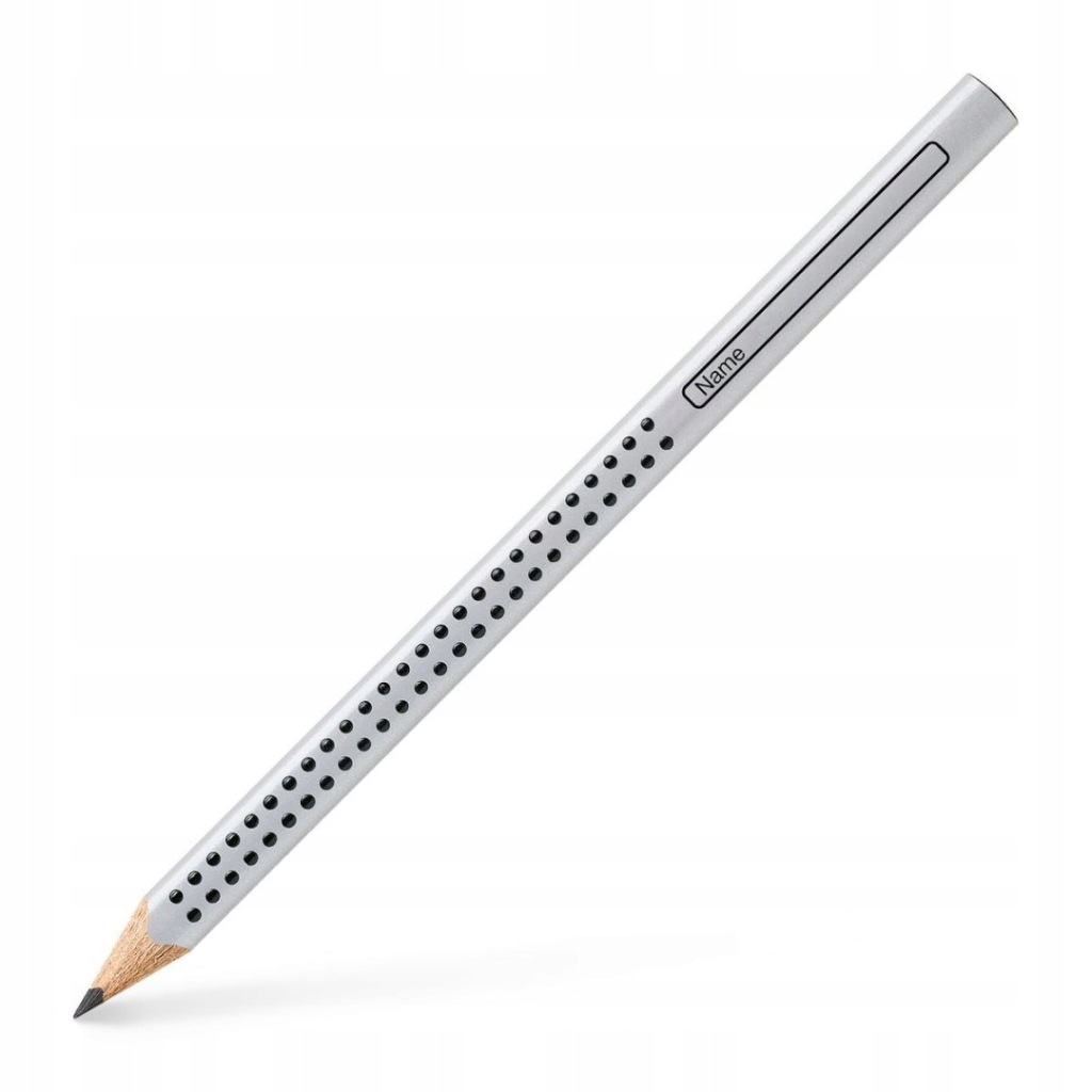 Ołówek grafitowy Jumbo Grip Faber-Castell w kolorze srebrnym. Nawet w czasach zdominowanych przez komputery, telefony i internet, ołówek wciąż pozostaje nieodłącznym towarzyszem codzienności. To doskonałe w swojej prostocie narzędzie. Ergonomiczny trójkątny kształt i charakterystyczna dla tej serii opatentowana strefa Grip z małymi, antypoślizgowymi punktami zapewniają wysoki komfort użytkowania i niemęczące, wygodne pisanie i szkicowanie. Większy rozmiar – doskonały do nauki pisania. Odpowiedni również dla leworęcznych. Z odpornym na pękanie grafitem o stopniu twardości HB, dzięki bezpiecznemu procesowi wiązania (SV). Wykonany z certyfikowanego drewna pochodzącego ze zrównoważonego i odpowiedzialnie zarządzanego leśnictwa. Powierzchnia pokryta lakierem na bazie wody – bezpiecznym dla środowiska i zdrowia dzieci.