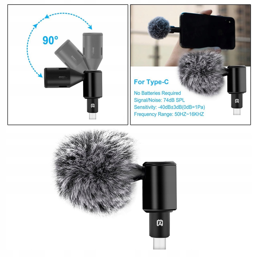 Mikrofon pojemnościowy Mikrofon telefoniczny typu Plug and Play dla iPhone’a, czarny, USB typu C
