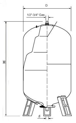 Zbiorniki wstępnie napełnione są powietrzem do ciśnienia 1,5 bar dla zbiorników od 24 do 100L oraz 2,5 bar dla zbiorników od 150 do 500L.