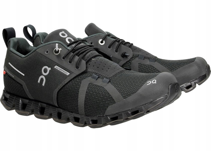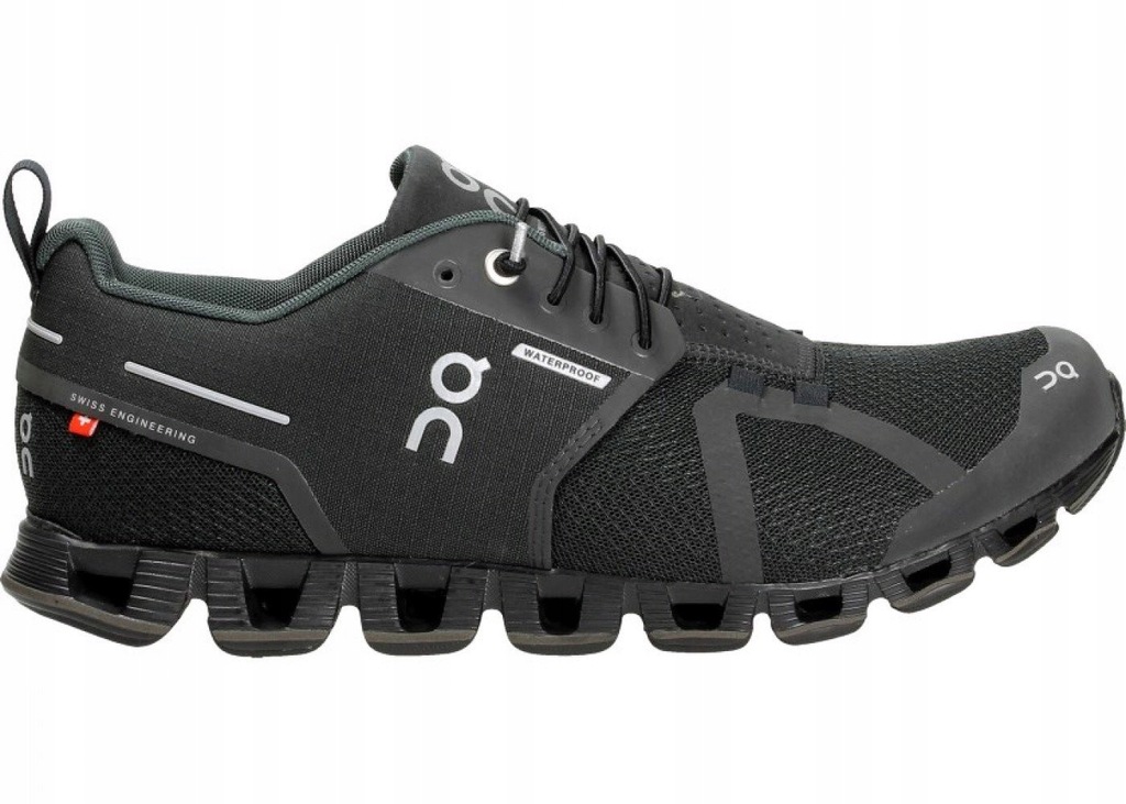 Półbuty męskie marki ON Running model Cloud Waterproof 1999987 w kolorze czarnym. Buty On Running CLOUD WATERPROOF to wodoodporna wersja kultowego modelu. Teraz żadne warunki pogodowe Cię nie powstrzymają! Model CLOUD został zaprojektowany tak, by ujarzmić wstrząsy podczas lądowania, jednocześnie oddając zgromadzoną podczas wybicia energię. CLOUD minimalizuje ryzyko urazów. holewka została wykonana z oddychającej i antybakteryjnej siateczki o anatomicznym kształcie. Wyściółka wewnętrzna składa się z innowacyjnego materiału o podwójnej gęstości, dbając o optymalne wsparcie i wygodę stopy. Buty są wyposażone w system speed-lacing (elastyczne sznurówki) dostosowujący się do Twojej stopy. Podeszwa CloudTec® zapewnia płynność ruchu oraz doskonałe osiągi, niezależnie od tego czy trenujesz na bieżni czy w terenie.Buty On Running zapewniają maksymalny komfort i wydajność. Zachwycają nowoczesnym designem. Są tak wygodne, że zechcesz je nosić nie tylko podczas treningu, ale i w każdej wolnej chwili. CLOUD to najbardziej amortyzowane buty biegowe na świecie.