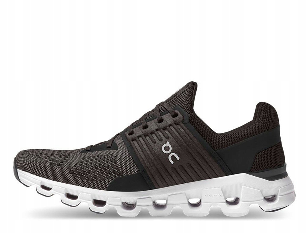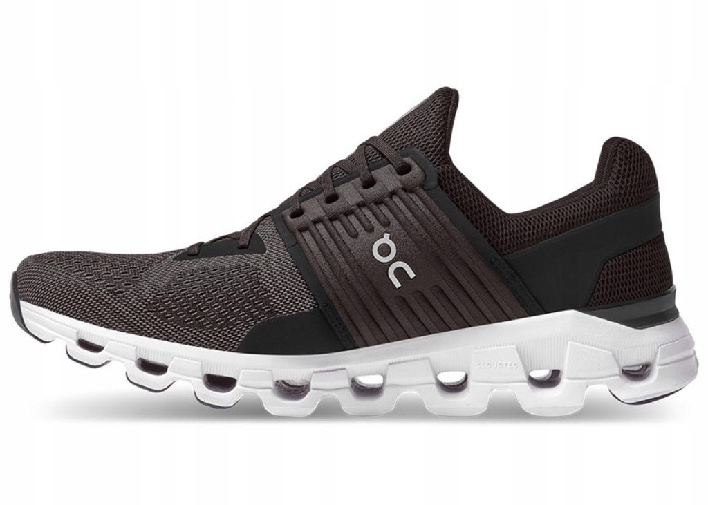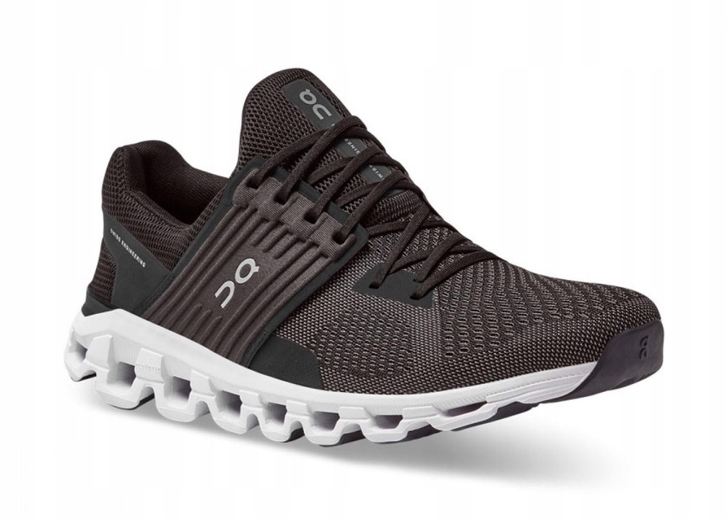 Półbuty męskie marki ON Running model Cloudswift 4199585 w kolorze czarnym z białymi elementami. Cholewka została wykonana z siateczki mesh zaprojektowanej do zapewnienia balansu między elastycznością i wsparciem. Konstrukcja skarpetki dla poprawienia zakładania i komfortu. Buty ON RUNNING CLOUDSWIFT to lekki model, który będzie towarzyszył Ci na miejskich ścieżkach podczas krótko- i średniodystansowych treningów. Optymalna amortyzacja zapewni komfort nawet przy tendencji biegania z pięty. Dedykowany osobom ze stopą neutralną.ZASTOSOWANE TECHNOLOGIE:Helionâ„ó Superfoam & CloudTec®Przeprojektowane i powiększone w stosunku do innych modeli poduszki CloudTec® oferują inteligentną amortyzację stopy, chroniąc piętę przed uderzeniami. Skuteczne pochłanianie wstrząsów z podłoża ogranicza zmęczenie.On Running Speedboardâ„óKołyskowy kształt podeszwy oraz zatopiona w niej wstawka Speedboardâ„ó oferuje wsparcie i dynamikę podczas przetaczania stopy z pięty na palce.