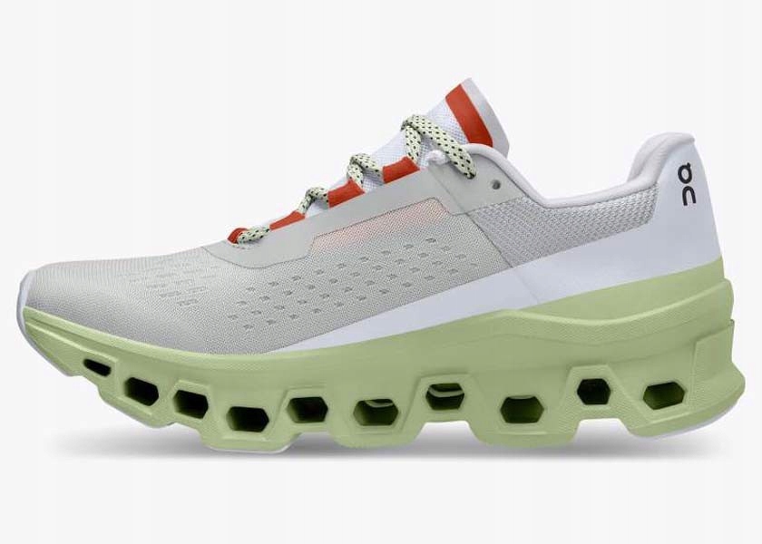 Półbuty damskie marki On Running model Cloudmonster 6199022 w kolorze szaro-zielonym. On Running Cloudmonster to zupełnie nowa propozycja od szwajcarskiej marki On Running. Skierowana jest do biegaczy poszukujących wygodnych, miękkich i dynamicznych butów. Ich konstrukcja składa się z największych jak dotąd chmur opartych o superpiankę Helion. Miękka wkładka wraz z cholewką zapewniają komfort na najwyższym poziomie. Dodatkowo, zostały wykonane częściowo z materiałów z recyklingu. W ciepłe dni możemy liczyć na dobrą wentylację i doskonałe dopasowanie otulające stopę, bez ryzyka podrażnień. Cienki język poprawia ten efekt dopasowując się wygodnie do podbicia. W miejscach narażonych na najszybsze zużycie zastosowano wytrzymała gumę. Sprawdzi się doskonale na twardych nawierzchniach oferując dobrą przyczepność. Ponad 80% zastosowanego poliestru i ponad 30% całego buta wykonano z materiałów pochodzących z recyklingu. Poczuj nowy wymiar amortyzacji z butami biegowymi On Running Cloudmonster. Przeznaczone do treningu na twardych nawierzchniach, gdzie odkryjesz kolejny poziom biegania po chmurach, tym razem w wersji MONSTER.