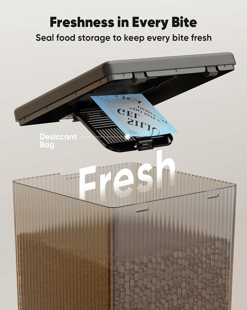 ✅ Świeżość karmy – szczelny pojemnik + woreczek pochłaniacz wilgoci