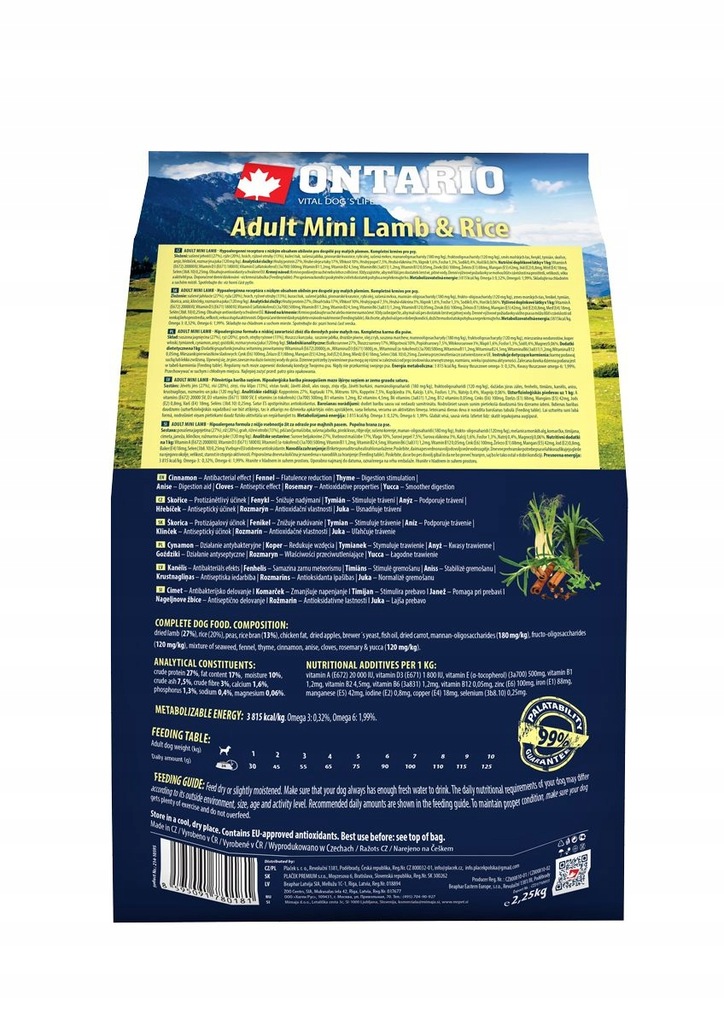 Karma Ontario zawiera wiele różnych witamin i minerałów, w celu wspierania zdrowia Twojego psa. To zrównoważona kompozycja dla prawidłowego funkcjonowania całego organizmu.