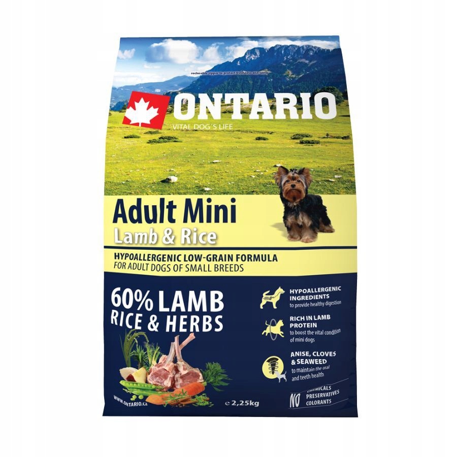 PRZEZNACZENIE KARMY ONTARIO ADULT MINI LAMB & RICE 2,25kg
