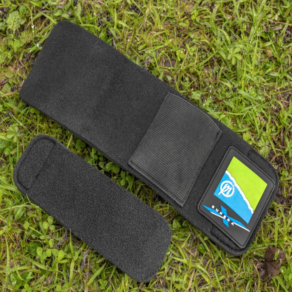 - Większa opaska posiada praktyczną zewnętrzną kieszonkę, do której można schować podajnik zanętowy na czas transportu. Dzięki temu minimalizujesz ryzyko uszkodzenia szczytówki lub przelotki.
