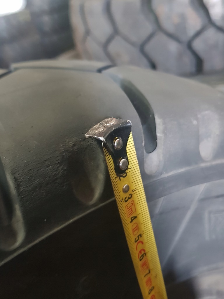 Jedna z opon posiada delikatne pęknięcie, które zostało zaznaczone na oponie białym kółkiem (zdjęcie nr.5 i 6)