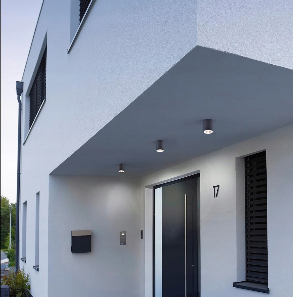Oprawa sufitowa natynkowa Valsea, aluminiowa mająca zastosowanie jako oświetlenie wewnętrzne i zewnętrzne. W komplecie znajdują się kołki montażowe.