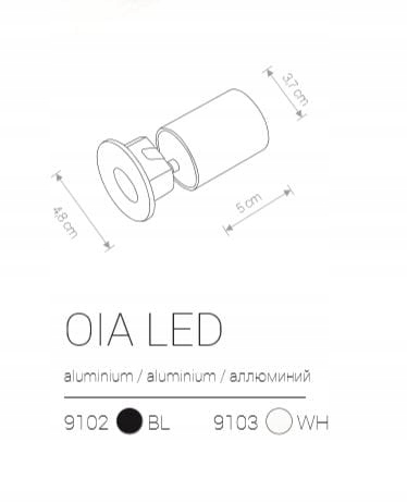 Oprawa podtynkowa kinkiet OIA LED czarny śr. 4,8cm