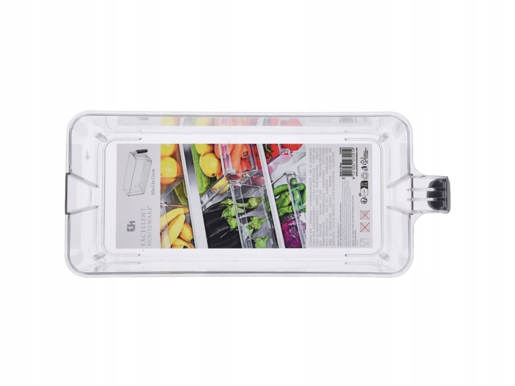 Organizer do lodówki do przechowywania produktów spożywczych. Dzięki przezroczystej formie można z łatwością zobaczyć zawartość pojemnika. Jest łatwy w czyszczeniu i wygodny w użytkowaniu, dzięki praktycznemu uchwytowi. Przydatny w każdym domu. Wyprodukowano zgodnie z europejskimi standardami.