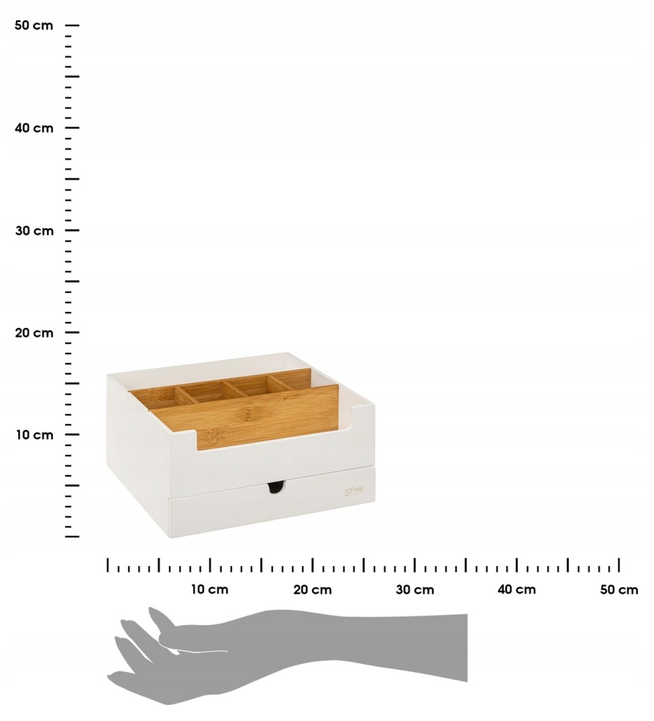 Efektem korzystania z organizerów jest uporządkowana przestrzeń oraz fakt, że będziesz mieć wszystko pod ręką Stanowi to niewątpliwą zaletę dla każdego kto ceni sobie nowoczesne i funkcjonalne rozwiązania Mimo niewielkich rozmiarów organizer wyposażony został w sześć wydzielonych przegródek i praktyczną szufladkę, które pozwalają pomieścić kosmetyki, akcesoria kosmetyczne i we Pojemnik wykonany został z wysokiej jakości drewna bambusowego, charakteryzując się dużą wytrzymałością i odpornością na wilgoć Oryginalny wygląd organizera pozwala wpasować się do niemal każdego stylu aranżacji wnętrza