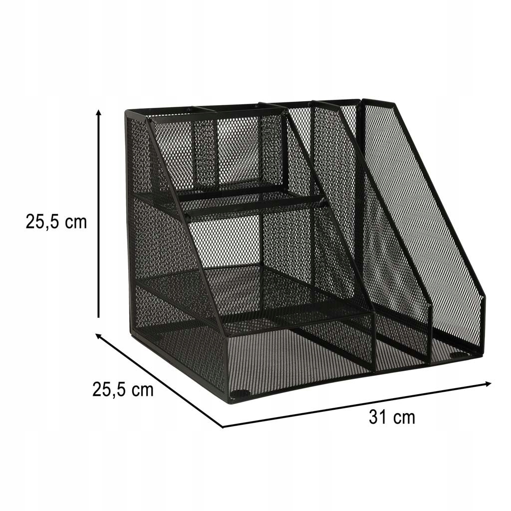 - metalowa siatka w czarnym kolorze sprawia, że organizer sprawdzi się zarówno w