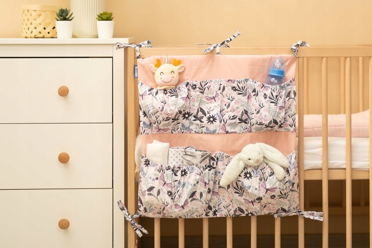 Organizer na łóżeczko to nie tylko praktyczny produkt, ale także ozdoba pokoiku dziecięcego. Posiada w sumie 5 kieszeni wzmocnionych gumką, które pomieszczą wszystkie niezbędne akcesoria. Organizer można łatwo zamontować na ramie łóżeczka przy pomocy wszytych tasiemek. Usztywniony został dodatkowo warstwą włókniny silikonowej. Z zewnątrz obszyty jest 100% bawełną. Organizer można skompletować z innymi produktami naszej oferty.
