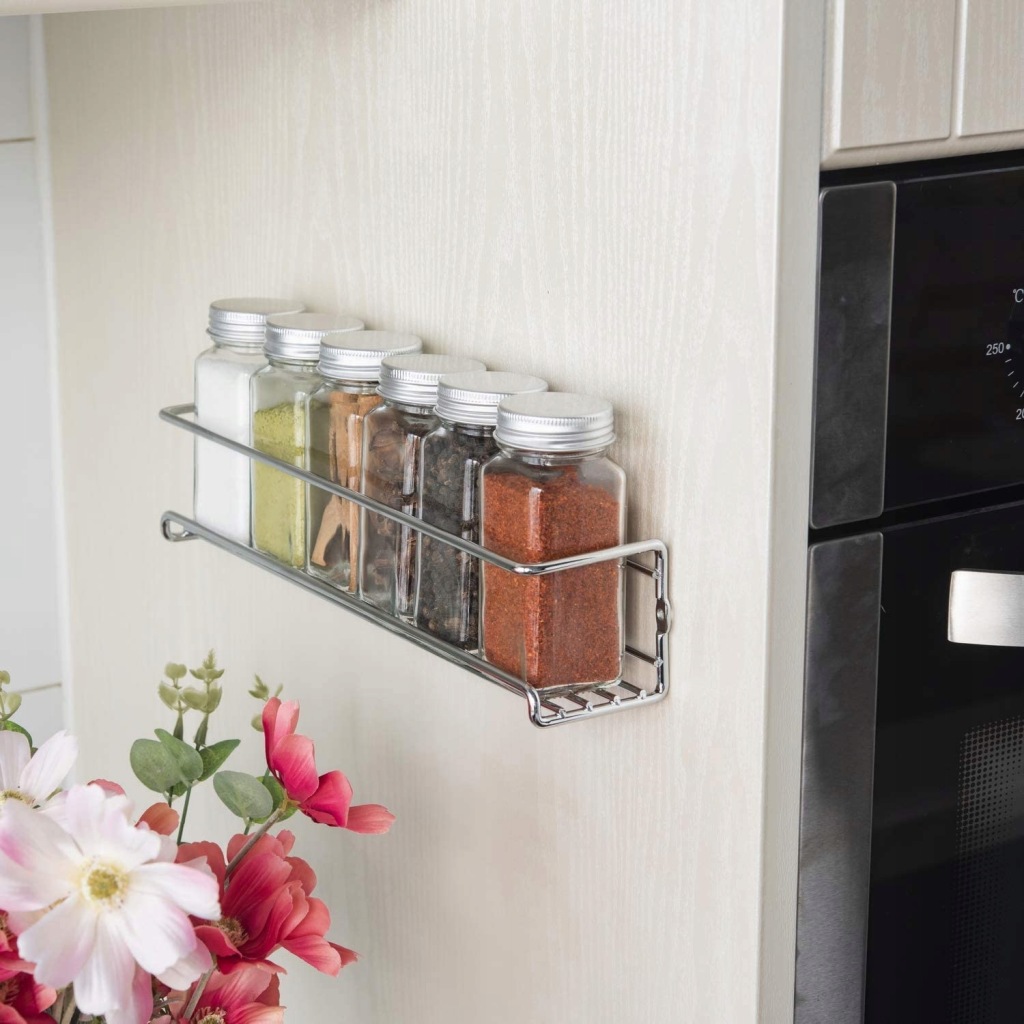 Stabilny i trwały. Nasze stojaki na przyprawy są wykonane z metalu. Są nierdzewne i odporne na korozję. Można je mocno powiesić na ścianie i nie spadną.