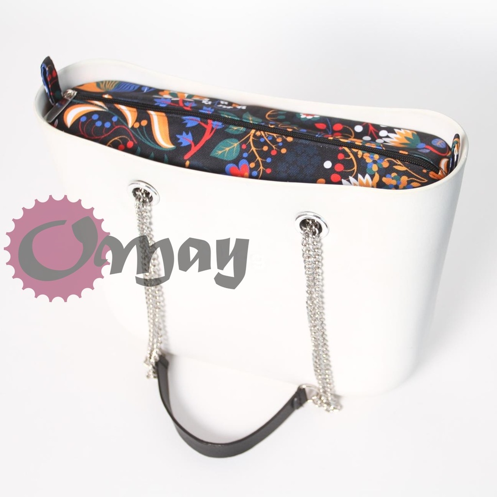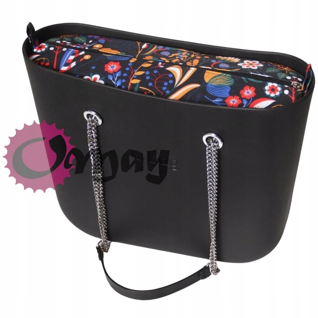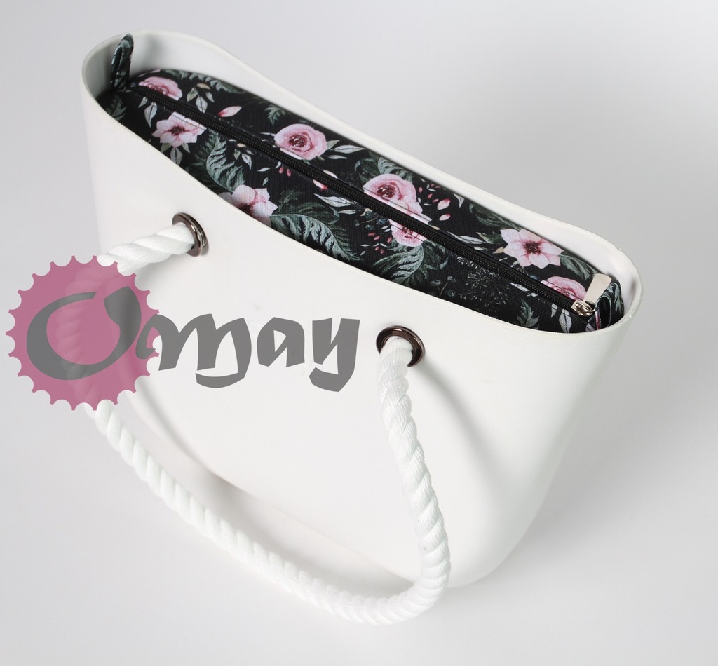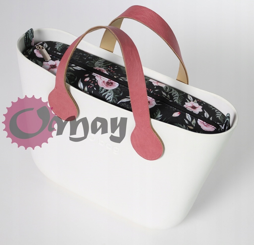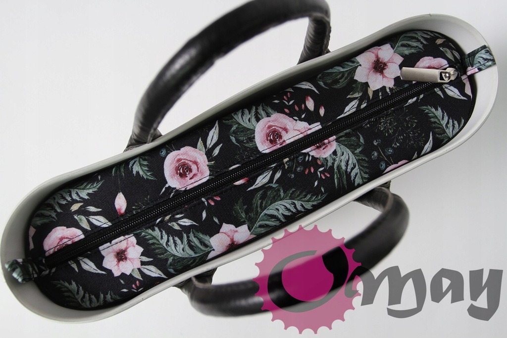organizer OBAG MINI róże czarne kwiaty pudrowy róż wkład 2 kieszenie OMAY