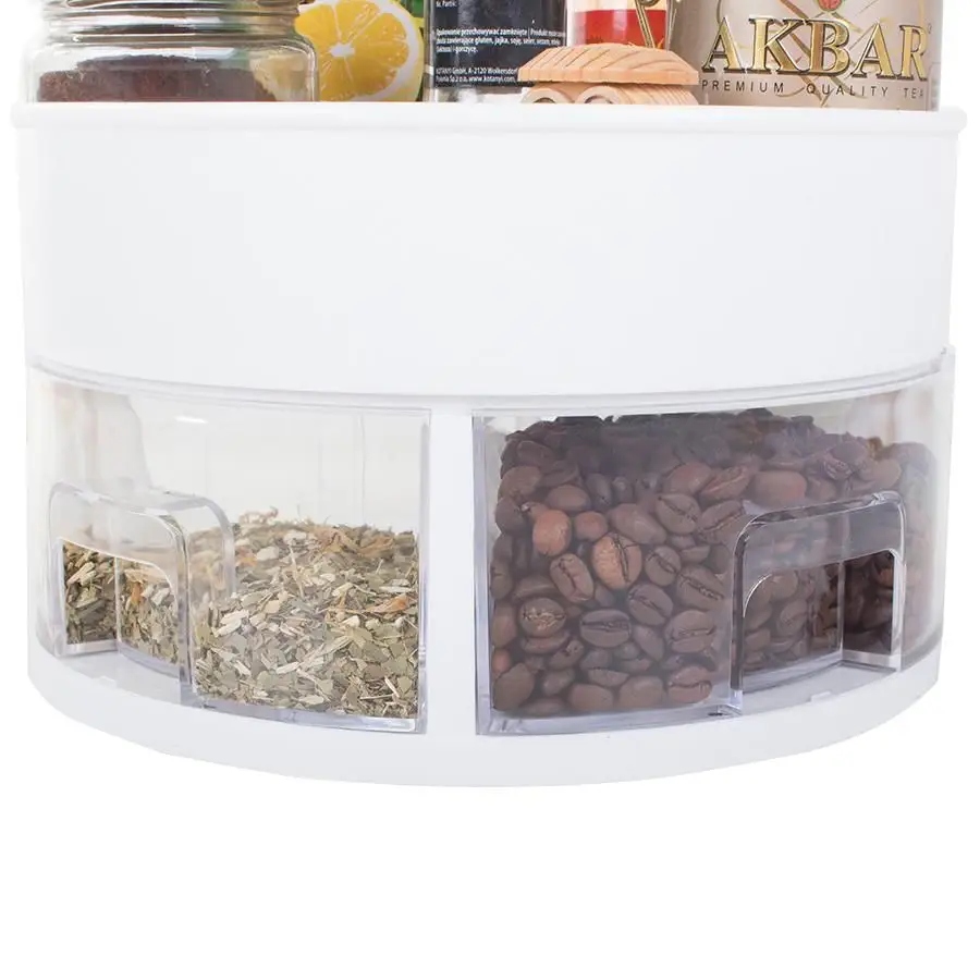 Uniwersalny obrotowy organizer do kuchni to idealna rzecz, aby utrzymać porządek z przyprawami do potraw, lekami, kosmetykami oraz innymi drobiazgami.
