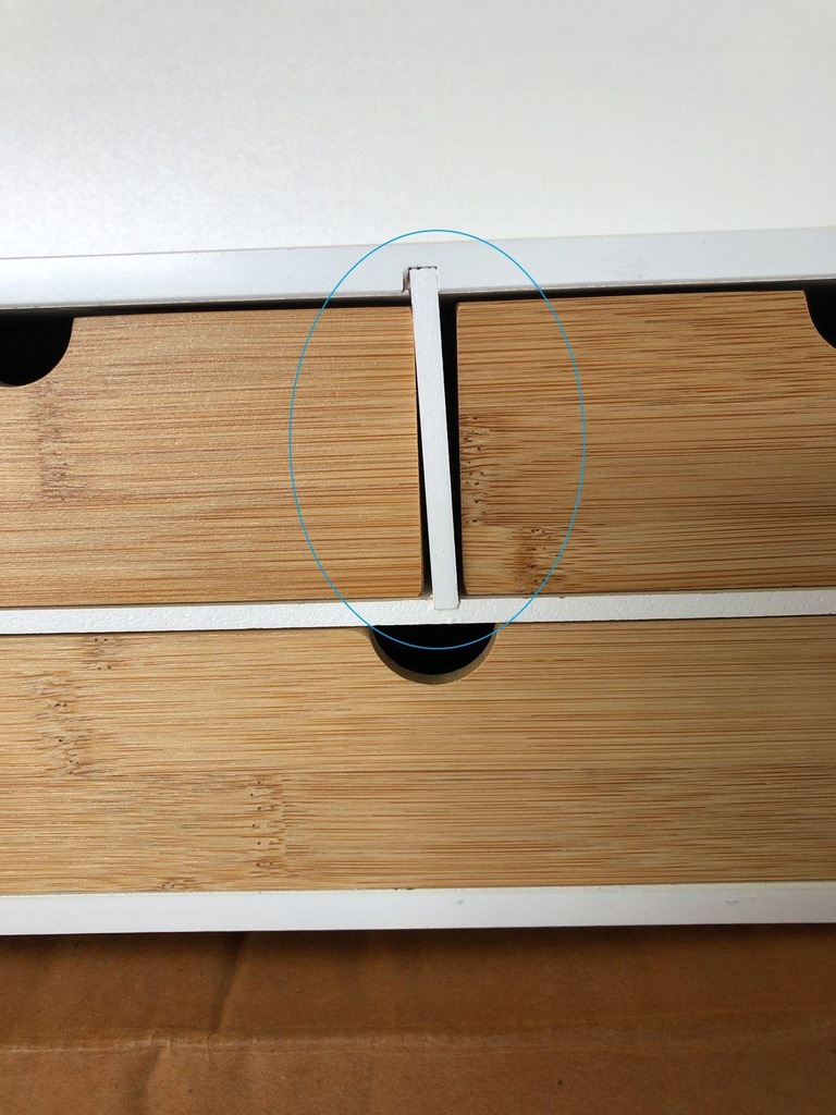 Projekt: Pudełko na organizery wykonane z białej płyty MDF z szufladami wykonanymi z bambusa - wymiary wys. x szer. x gł.: ok. 14 x 33 x 21 cm
