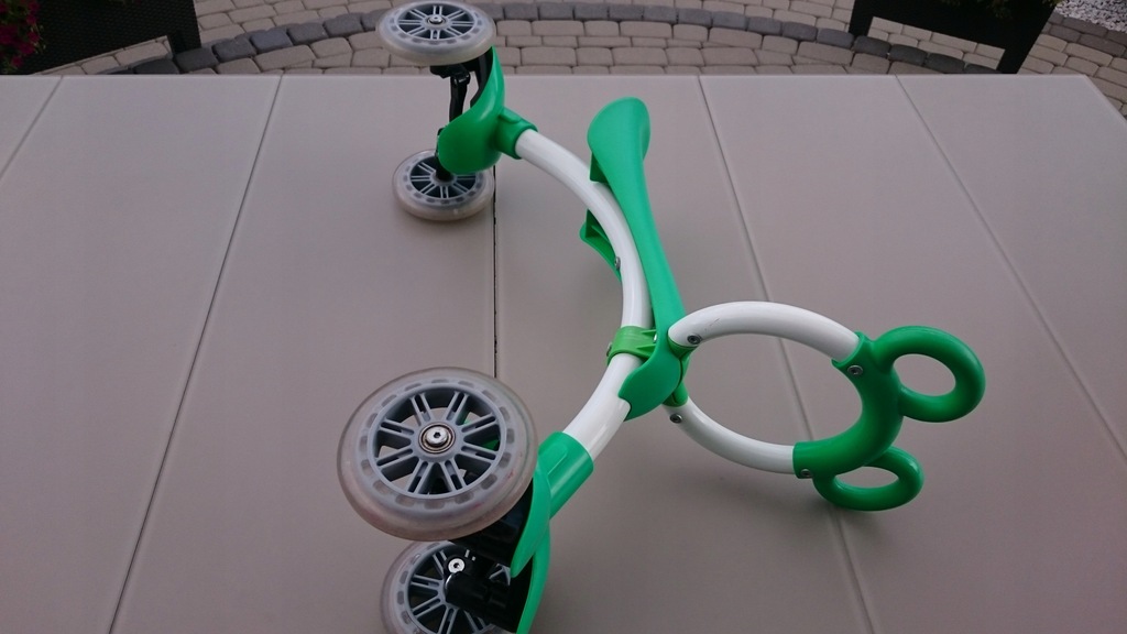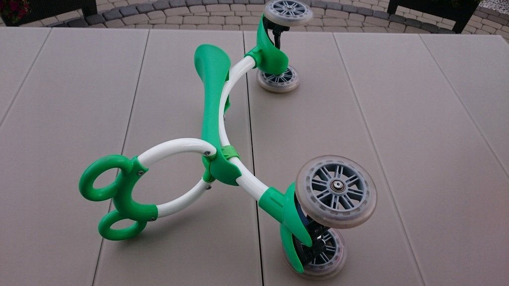 Pojazd Orion green posiada funkcję amortyzacji co powoduje, że dziecko balansując ciałem uczy się koordynacji psychoruchowej. Rowerek więc nie tylko bawi ale i uczy. Jego kolejną unikatową cechą są łożyskowane kauczukowe kółka, które zapewniają dobre toczenie oraz to, że można nim jeździć zarówno w domu jak i na dworze. Nie jest to tylko zabawka jak większość jeździków, ale innowacyjne urządzenie przy którym żaden maluch oraz rodzic nie będzie się nudził.