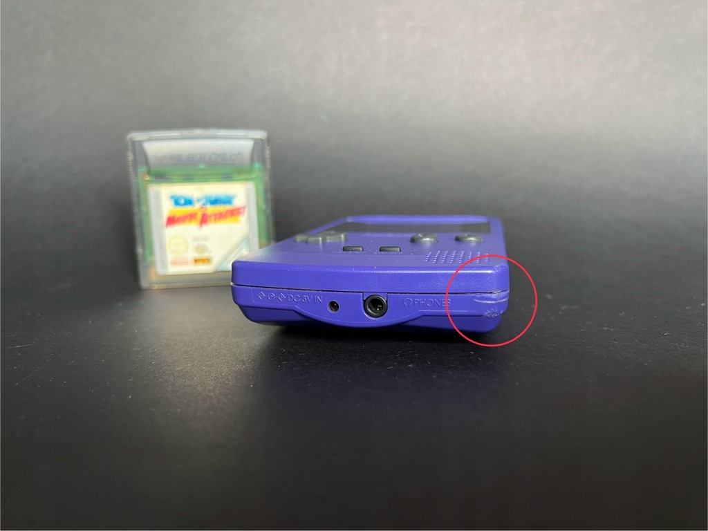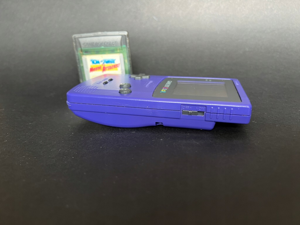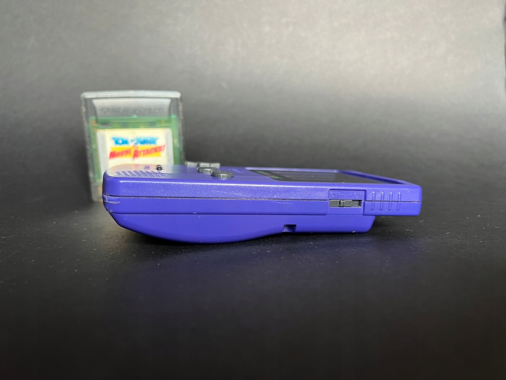 Game Boy color to wersja z kolorowym wyswietlaczem i lepszym odwieżaniem obrazu w porównaniu do poprzednich modeli. Stan konsoli jest widoczny na zdjęciu. Konsola posiada ślady użytkowania np ryski. Ogólnie konsola jak na swój wiek jest zadbana, jedynie posiada obicie zaznaczone na drugim zdjęciu.